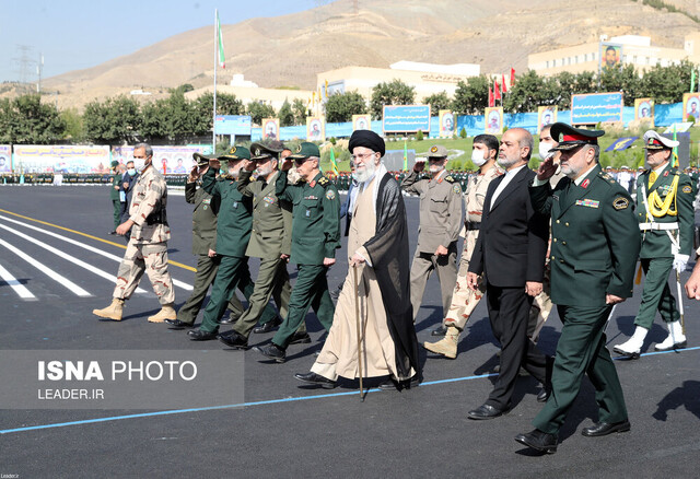 ما فرماندهان و مسئولان نیروهای مسلح اعم از ستادکل نیروهای مسلح، قرارگاه مرکزی حضرت خاتم الانبیاء (ص)، ارتش جمهوری اسلامی ایران، سپاه پاسداران انقلاب اسلامی، فرماندهی انتظامی جمهوری اسلامی ایران و وزارت دفاع و پشتیبانی نیروهای مسلح از حضور با اقتدار، روحبخش و افتخارآفرین در دانشگاه افسری و تربیت پلیس حضرت امام حسن مجتبی (علیه السلام) در فرماندهی انتظامی جمهوری اسلامی ایران به مناسبت مراسم دانش آموختگی و اعطای سردوشی فارغ التحصیلان دانشگاههای افسری نیروهای مسلح و بهرهمندی از فرمایشات الهی و سرشار از حکمت، پند، اندرز، تدبیر، روشنگری، آگاهی بخش و امیدآفرین برای جمع حاضر، آحاد جامعه و امت اسلامی به ویژه جوانان و هشدار دهنده به فتنهگران داخلی و اربابان خارجی آنها از جمله آمریکای جنایتپیشه، رژیم جعلی صهیونیستی و رژیم سعودی و امپراطوری رسانهای استکبار جهانی و همچنین موعظه و نصایح ارزشمندتان در جمع پیشکسوتان دفاع مقدس (حضوری، تصویری) قدردانی نموده و ضمن تبریک سالروز امامت و ولایت امام عصر (عجل الله تعالی فرجه الشریف) بار دیگر با ولی امر مسلمین، مولا و مقتدایمان و فرمانده شجاع، مقتدر و عزیزتر از جانمان، پیمان میبندیم که در راه نورانی انقلاب اسلامی و آرمانهای بلند آن، جهاد و مبارزه با دشمنان دین خدا، کفار، مشرکین، منافقان، فتنهگران و بدخواهان ملت غیور و ایران اسلامی و دفاع از امت اسلامی و جبهه مقاومت را در هر نقطه و در هر مکان، تحت زعامت حضرتعالی، تا آخرین قطره خون، آخرین نفس و تا پای جان ادامه خواهیم داد و نقشههای شوم دشمنان قسم خورده انقلاب اسلامی را نقش بر آب خواهیم نمود.